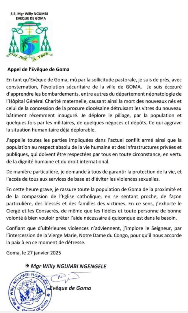 A LA UNE Appel de l’Évêque de Goma Par Cellule de communication - février 3, 2025 0 128 FacebookTwitterWhatsAppEmailTelegram