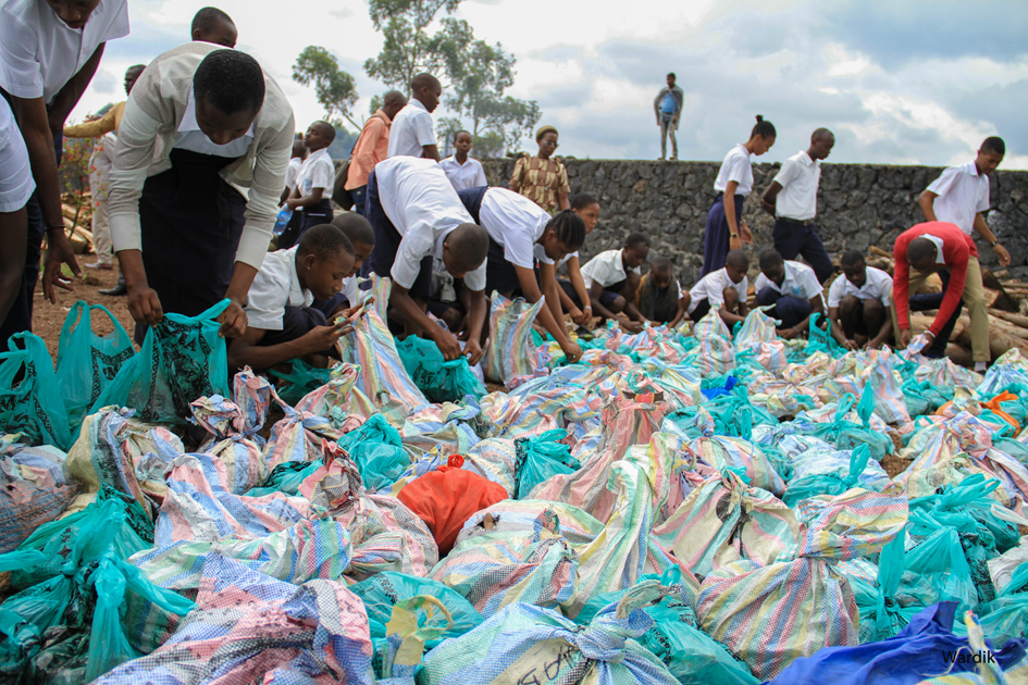 Accompagné par des milliers d’élèves des différentes écoles de Goma, Mgr Henri Chiza a jeté les dés en partageant l’assistance – un sachet d’haricot- avec une élève vivant au camp des déplacés à Turunga, un autre site à part celui de Kanyaruchinya où les déplacés ont élu domicile. Devant une foule de petits enfants, l’émotion était grande. On pouvait voir certains sans babouches, habits déchirés ou culotes… ravis de recevoir l’assistance.