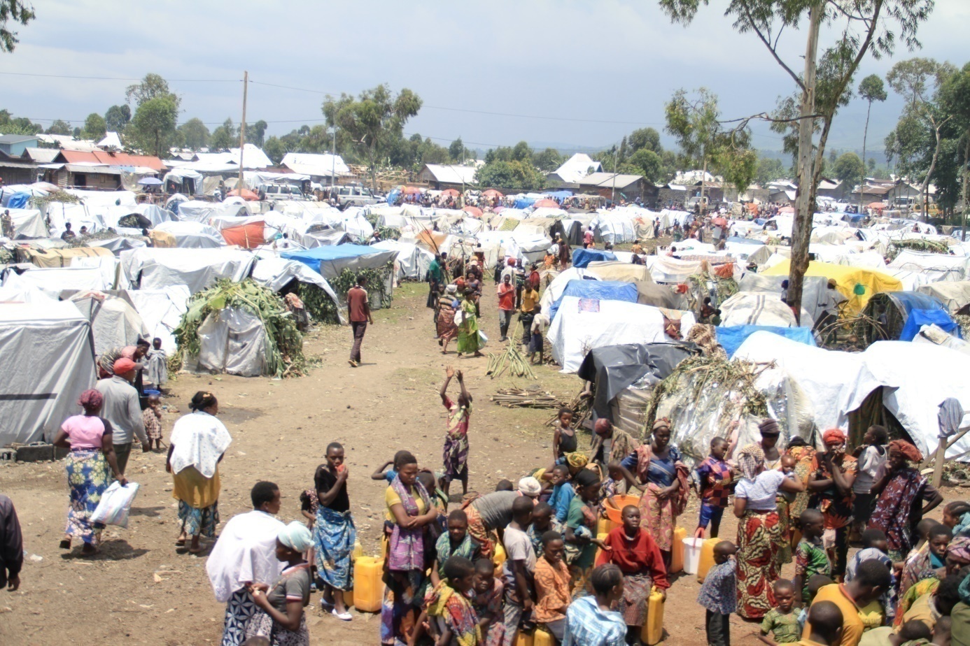 Femmes, enfants, vieillards,  tous munis de leurs sacs sur la tête ou sur le dos ont pris fuite, parcourant au moins 72km pour rejoindre Goma, qui semble pour le moment un havre de paix, même s’il faille se cantonner dans des camps de fortune à la merci des intempéries et sans aucune assistance humanitaire quelconque à Kanyaruchinya (Goma). Et depuis la progression du M23 dans la province, des milliers d’habitants se sont réfugiés dans ce camp pour échapper aux combats.  Ils sont estimés à plus 40.000 le nombre de ses occupants renseigne un membre de la société civile. Des affrontements à l’arme lourde  qui se sont intensifiés depuis le 15 novembre à Kibumba, à une vingtaine de km au nord de Goma n’a fait qu’empirer la situation, car rendant difficile l’approvisionnement des populations en denrées de premières nécessités. Kibumba, une localité considérée comme un des derniers verrous sur la route nationale 2 en direction du chef-lieu du Nord-Kivu.