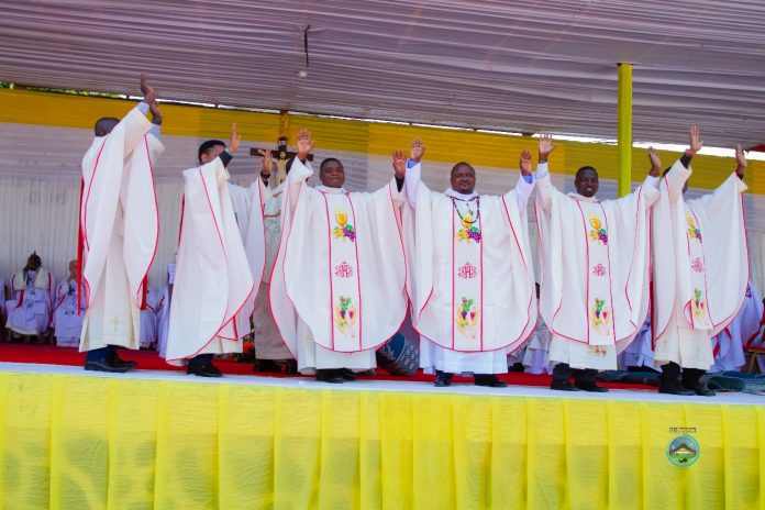 Goma, dimanche 3 août 2025, Une dévotion toute particulière a animé la paroisse Mont Carmel, alors que des centaines de fidèles se sont rassemblés pour assister à une messe d’ordination exceptionnelle. Sous la présidence de Son Excellence Mgr Willy Ngumbi Ngengele, six prêtres et huit diacres ont été ordonnés au cours d’une célébration eucharistique marquée par l’émotion, la foi et la solennité.